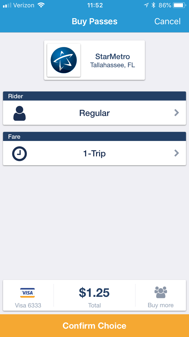 StarMetro currently has a fleet of 66 buses, 157 shelters, and near 1,000 stops. It is one of the only systems in the state to have 100% Braille on its bus stops. The current price of a bus fare is $1.25.