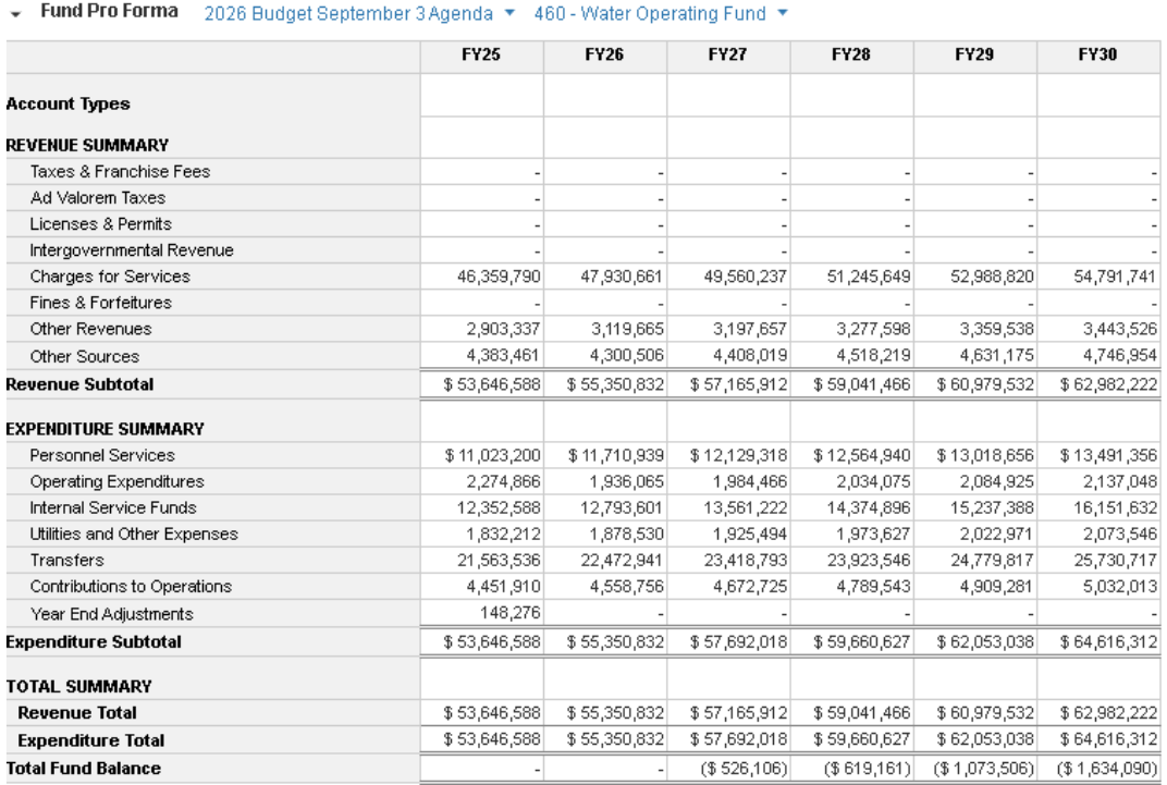 To achieve the City Commission’s priorities, the FY26 budget continues efforts to streamline operations, consolidate work groups, and utilize cutting-edge technology to improve efficiency and effectiveness. At the June workshop, staff presented a proposed budget that included expense reductions. These reductions included process and technology improvements, as well as real estate lease management. All of these efforts to reduce expenses have been made to maintain current output and service levels and have resulted in an FY26 balanced budget.